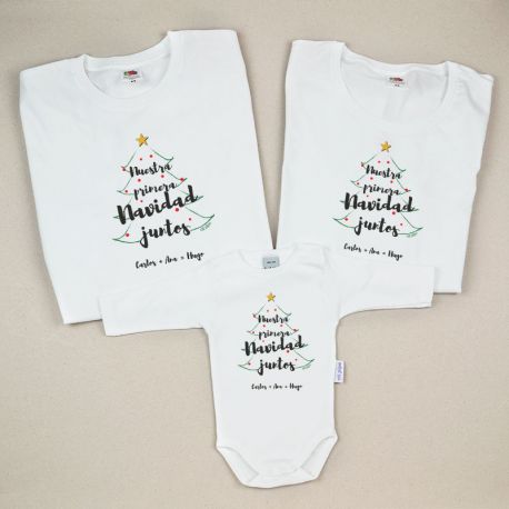 Pack 3 Prendas Personalizadas Nuestra Primera Navidad juntos Árbol Silueta