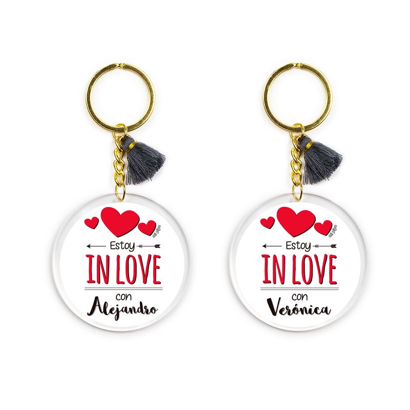 Pack Llaveros Personalizados Metacrilato Redondo Estoy in Love (nombres) Ver más grande