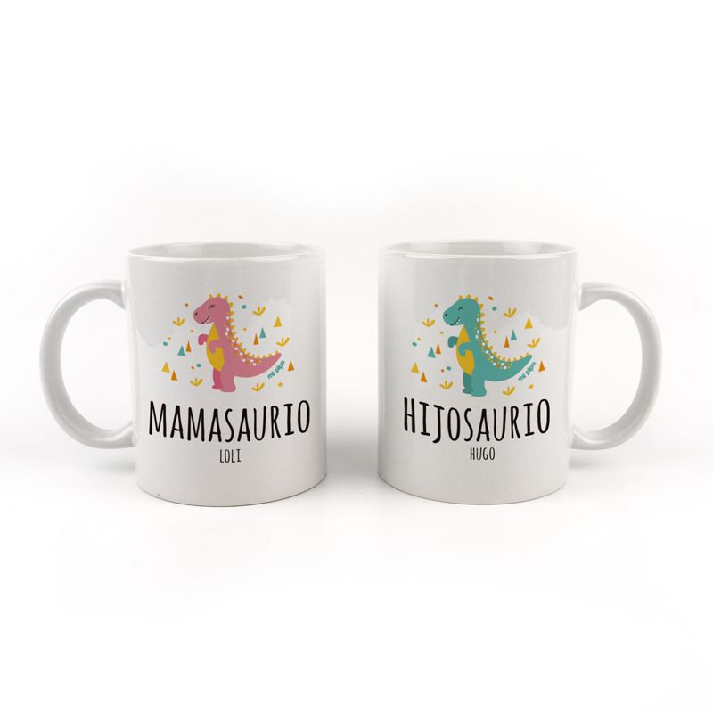 Pack Tazas cerámica o plástico Personalizada Mamasuario, Hijosaurio