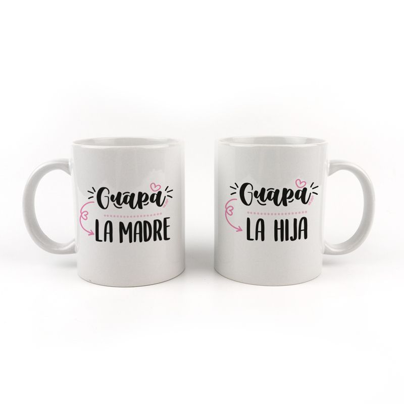 Pack Tazas cerámica o plástico Guapa la Madre, Guapa la Hija
