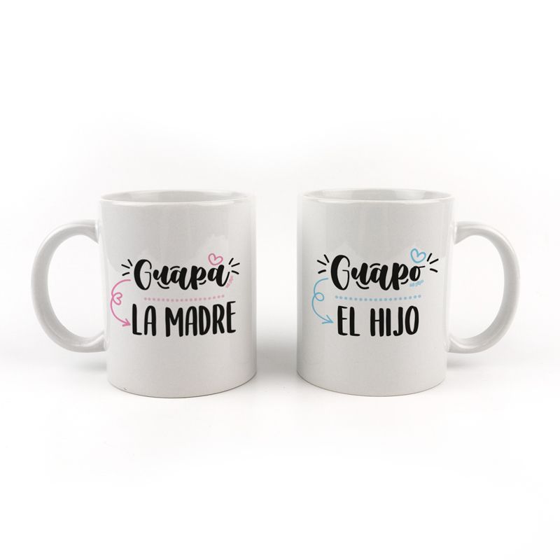 Pack Tazas cerámica o plástico Guapa la Madre, Guapo el Hijo