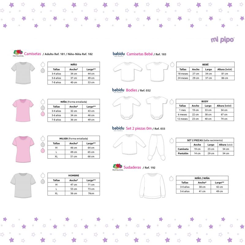 Las tonalidades o texturas de los tejidos pueden variar de una remesa a otra o entre prendas de adulto y/o niño/a.