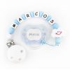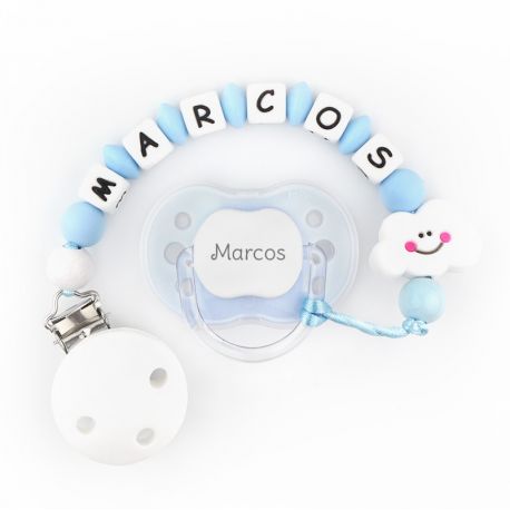 Cajita Chupete Celeste + Cadenita de silicona Nube azul personalizados