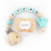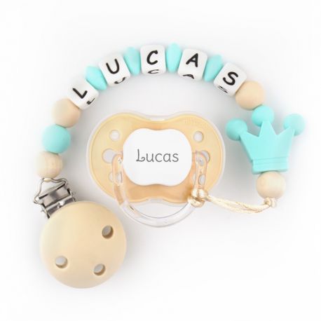 Cajita Chupete Beige+ Cadenita de silicona Corona turquesa personalizados