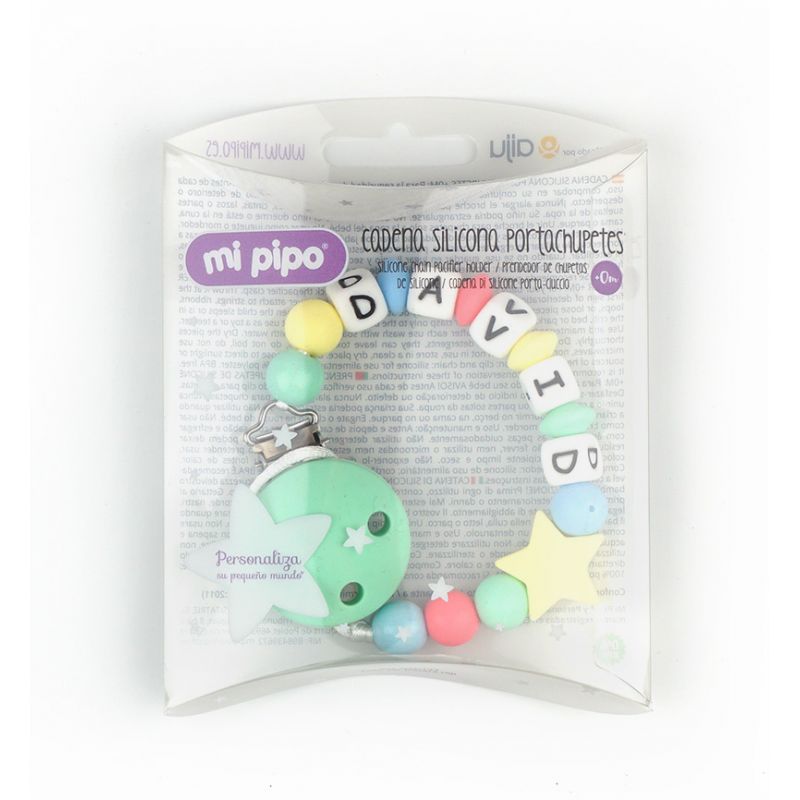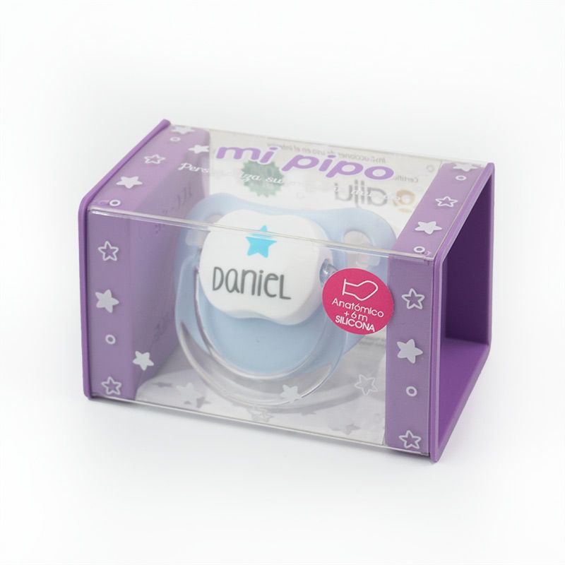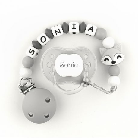 Cajita Chupete Gris + Cadenita de silicona Zorrito gris personalizados