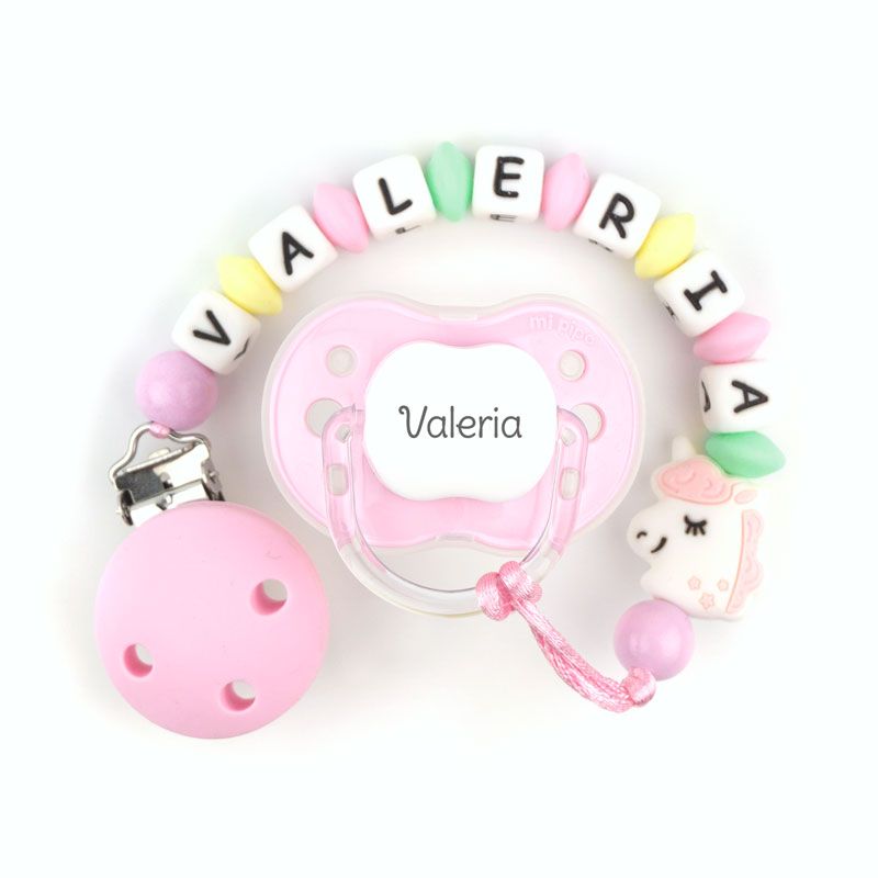Cajita Chupete Rosa + Cadenita de silicona Unicornio Rosa personalizada