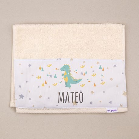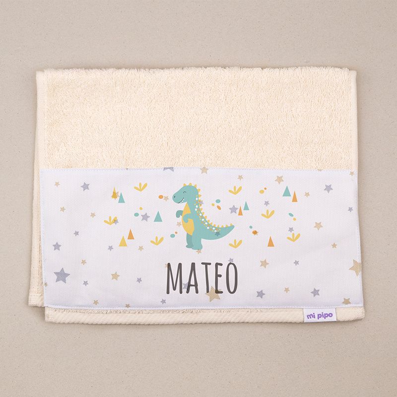 Toallita de Rizo Dinosaurio Beige Personalizada