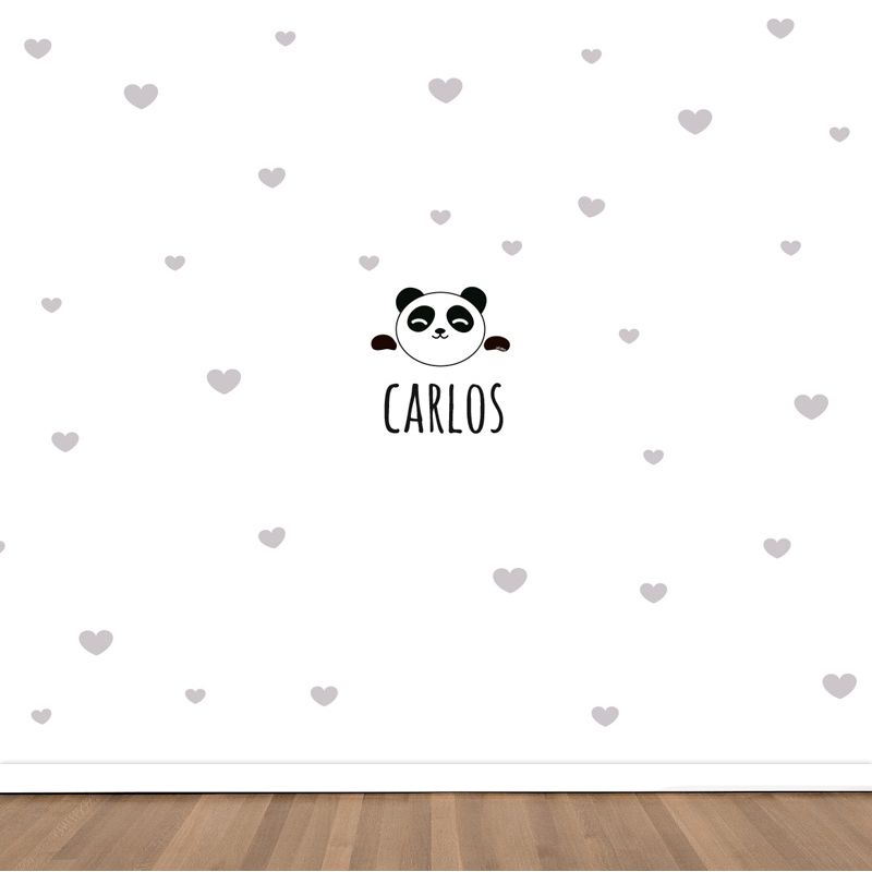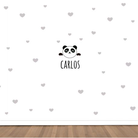 Vinilo decorativo Maxi Panda Corazones Gris