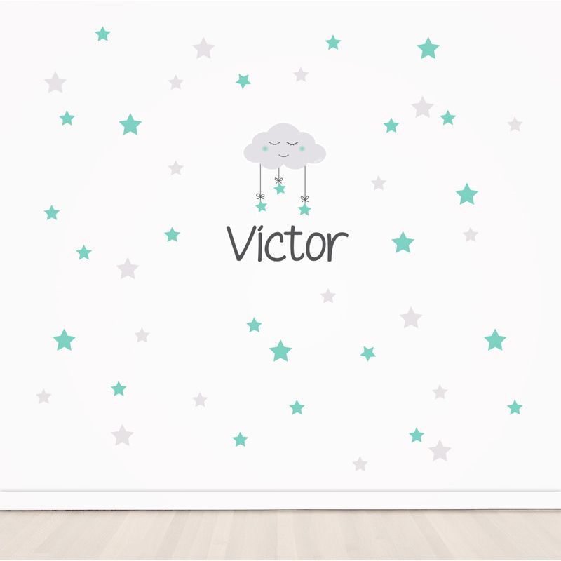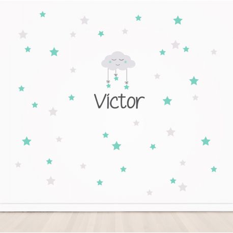 Vinilo decorativo Maxi Nube con Estrellas Menta