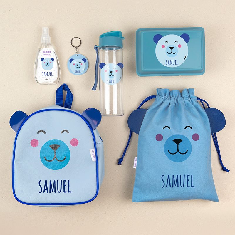 Pack Cole Zoo Oso Azul personalizado + Regalo Llavero