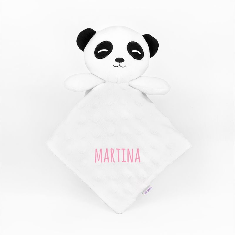 - Se personaliza con el nombre bordado en color azul, rosa o menta