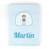 - Puedes elegir el color del bordado del nombre. El color del bordado del aplique se hará acorde a los colores de la manta y del dibujo