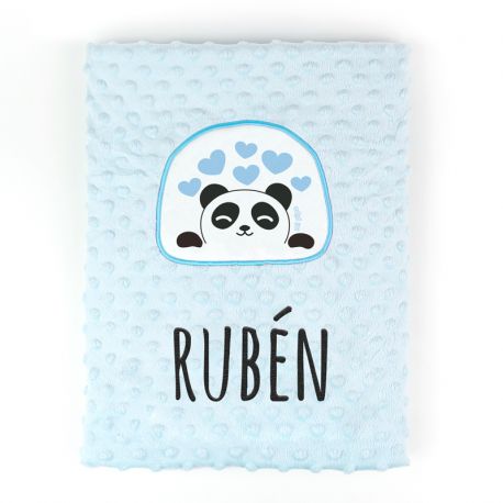 Manta Aplique Panda Azul