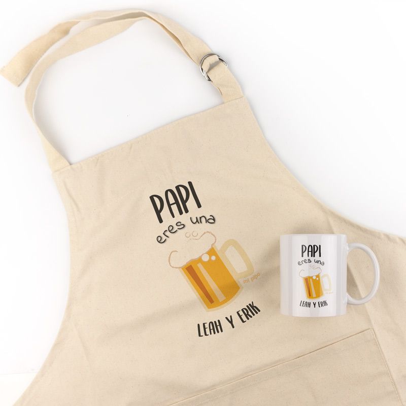 Pack Delantal Papá + Taza Persoalizado Papi eres la Caña (nombres)
