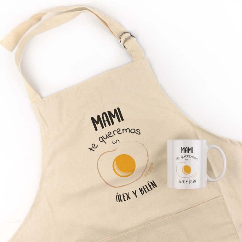 Pack formado por un delantal de adulto y una taza de cerámica