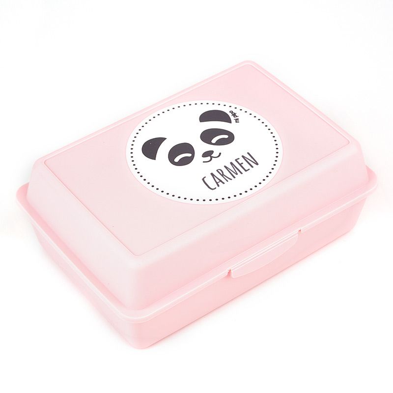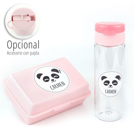 Pack Botella 600ml + Cajita Porta Alimentos Panda Rosa personalizadas