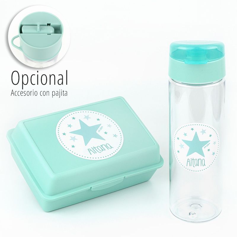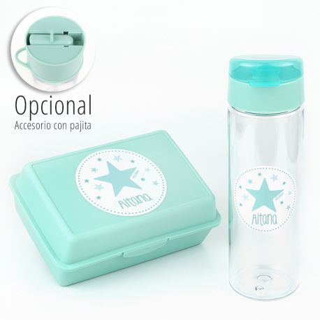 Pack Botella 600ml + Cajita Porta Alimentos Estrella Menta personalizadas