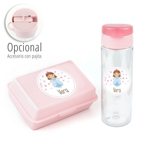 Pack Botella 600ml + Cajita Porta Alimentos Princesa Rosa personalizadas