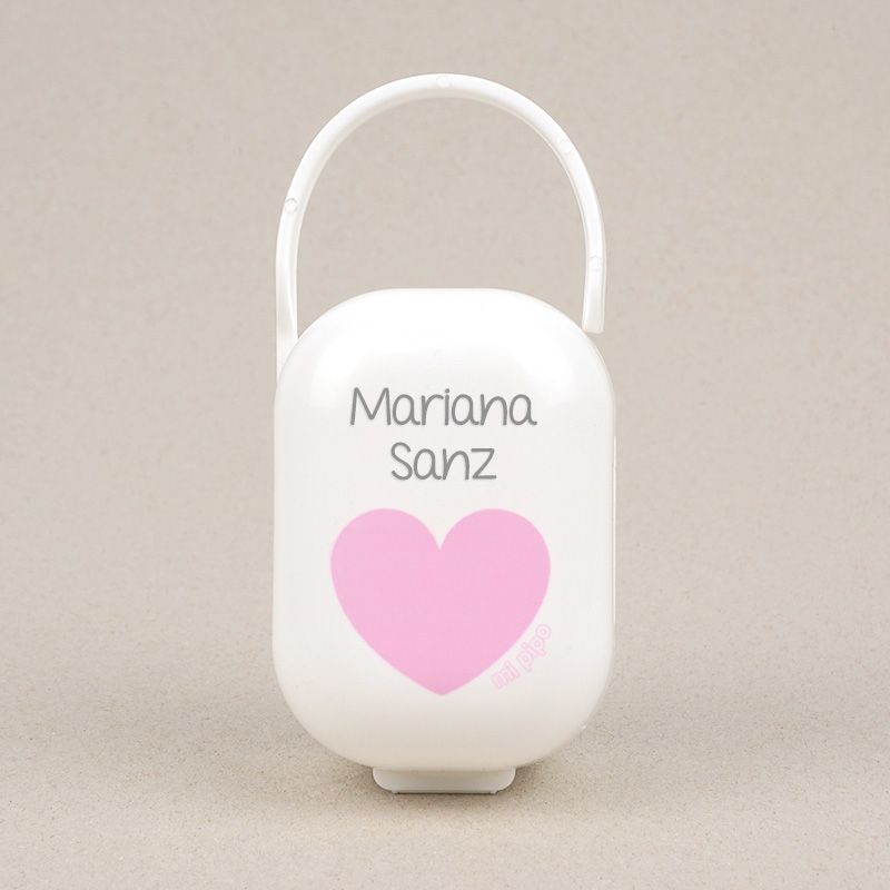 Cajita Portachupetes Deco Corazón Rosa Personalizada
