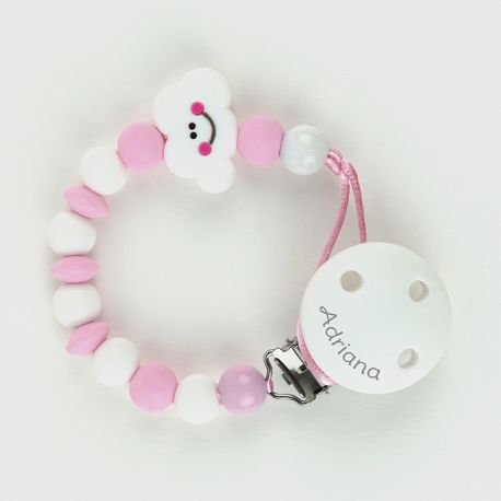 Cadenita Silicona Nube Rosa con nombre en el CLIP