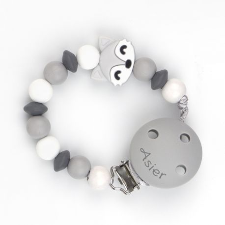 Cadenita Silicona Zorrito Gris con nombre en el CLIP