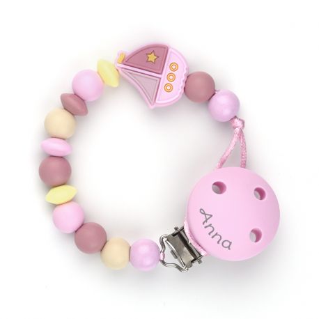 Cadenita Silicona Barquito Rosa con nombre en el CLIP