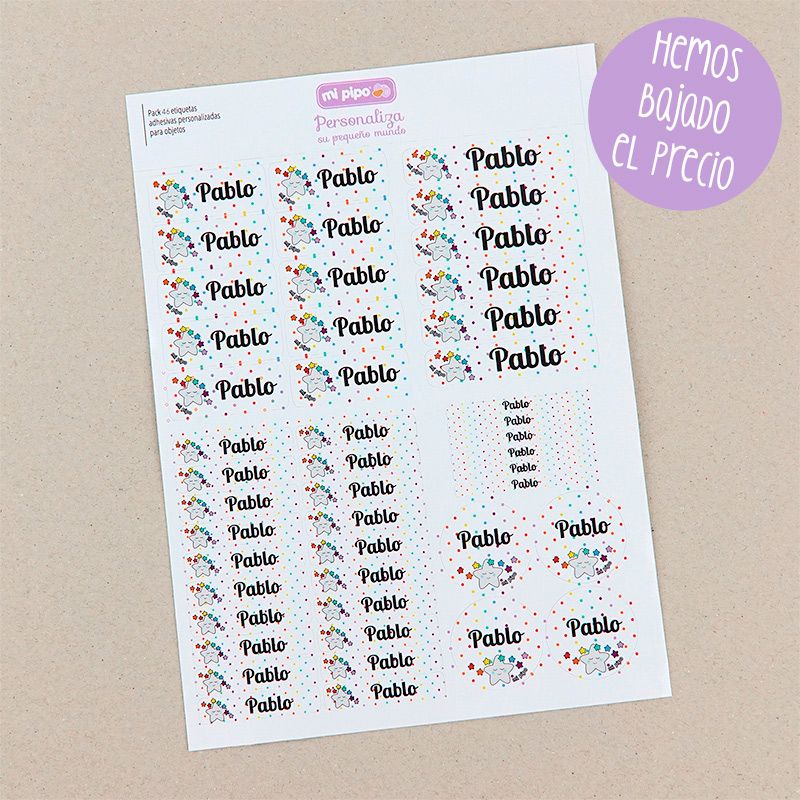 Pack 46 etiquetas adhesivas personalizadas para objetos Estrella sonrisa