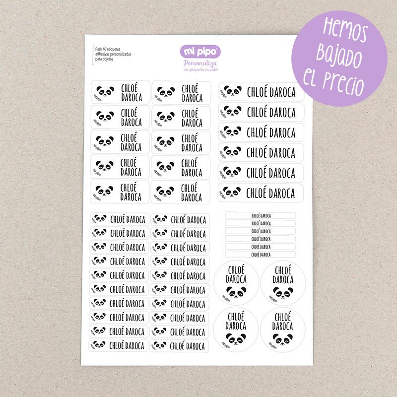 Pack 46 etiquetas adhesivas personalizadas para objetos Panda