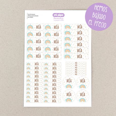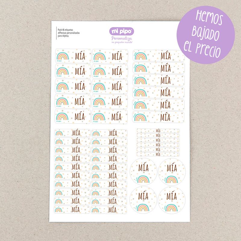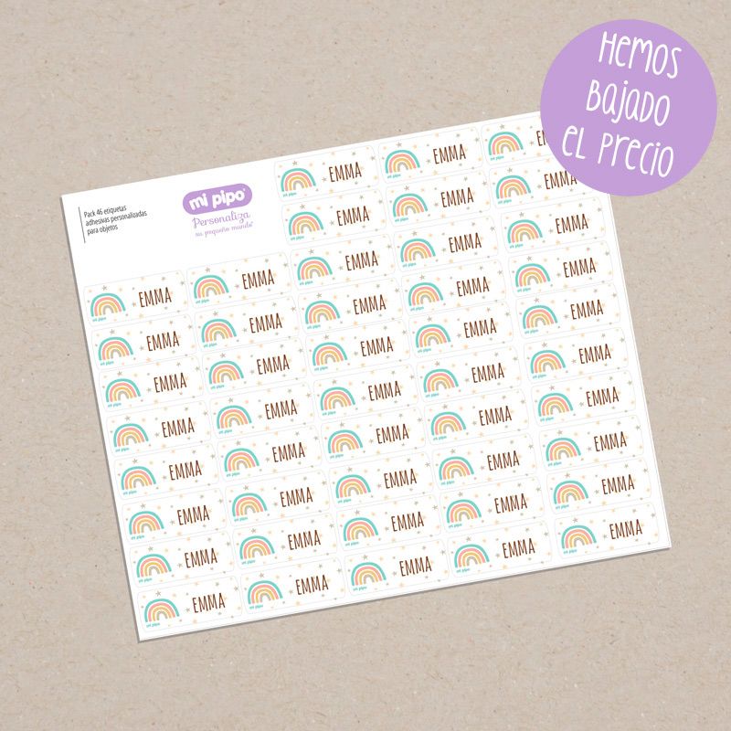 Pack 46 etiquetas adhesivas personalizadas para objetos Arcoíris Soft