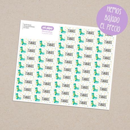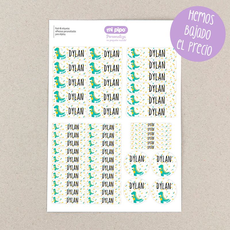 Pack 46 etiquetas adhesivas personalizadas para objetos Dinosaurio