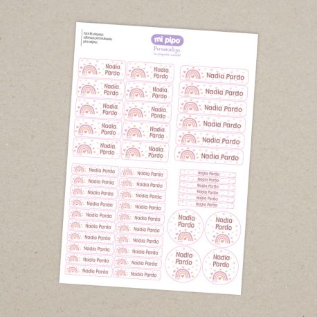 Pack 46 etiquetas adhesivas personalizadas para objetos Arcoíris Blush