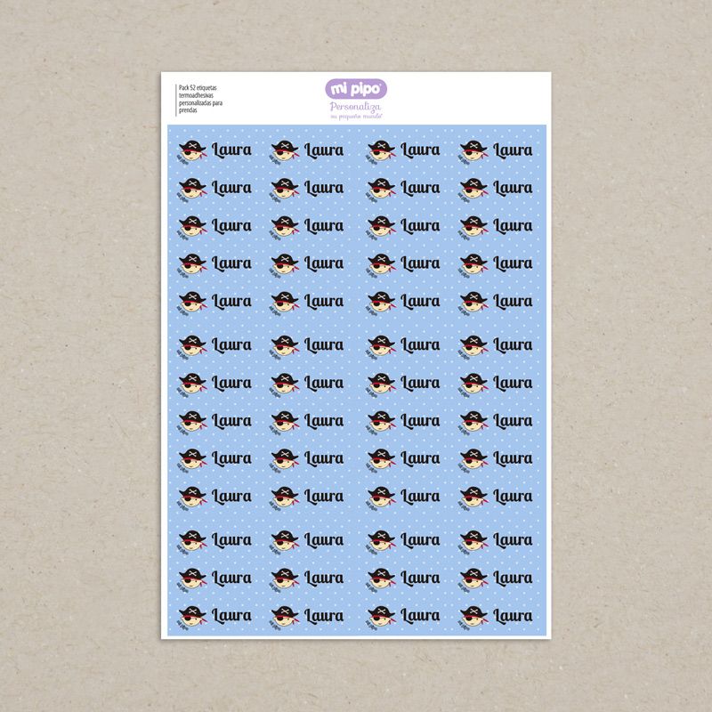 Pack 52 etiquetas termoadhesivas personalizadas para ropa Pirata