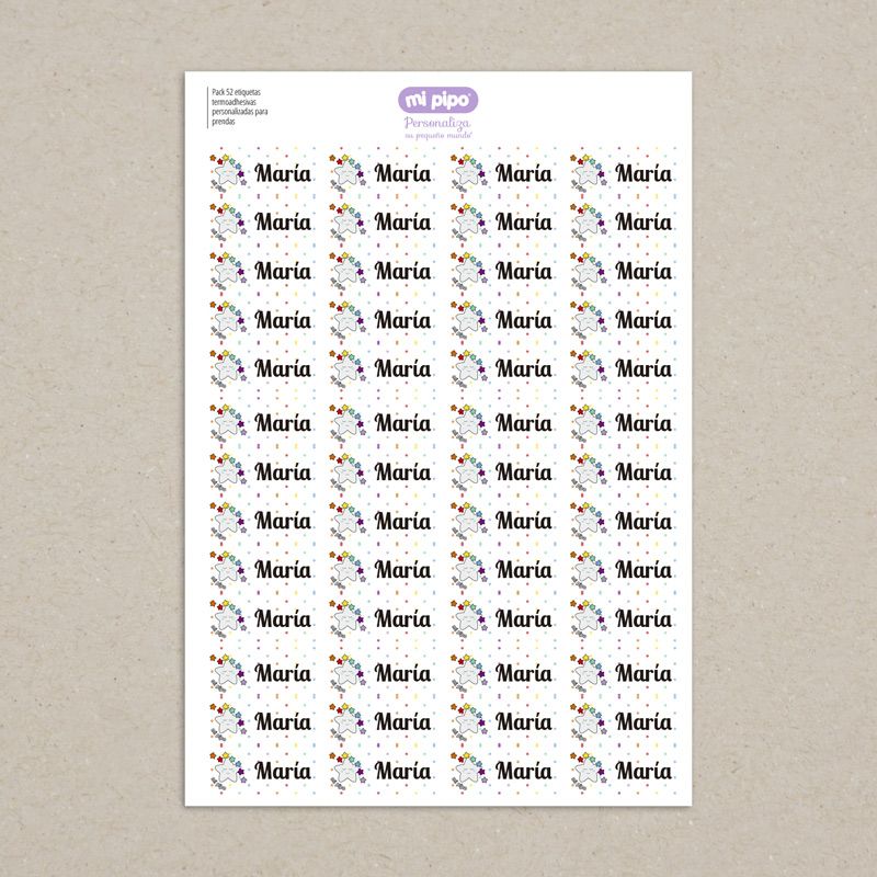 Pack 52 etiquetas termoadhesivas personalizadas para ropa Estrella sonrisa