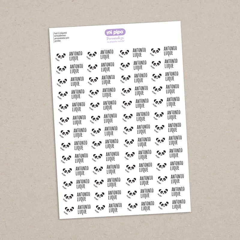 Pack 52 etiquetas termoadhesivas personalizadas para prendas Panda