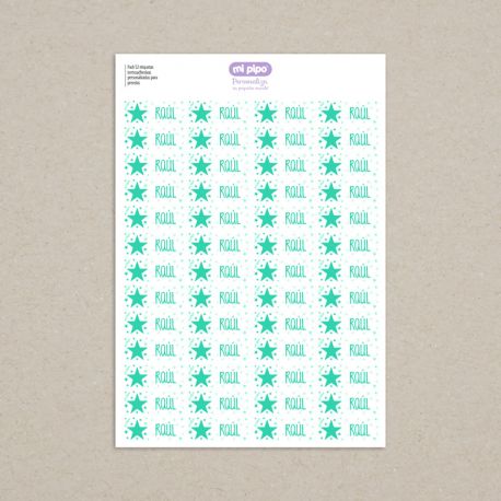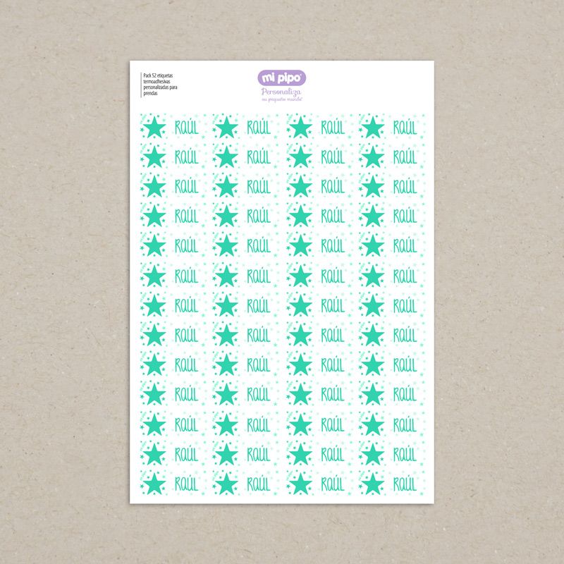 Pack 52 etiquetas termoadhesivas personalizadas para prendas Estrella menta