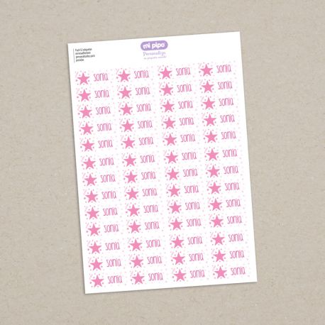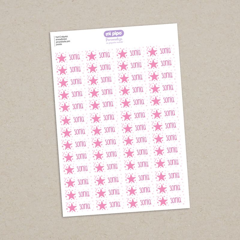 Pack 52 etiquetas termoadhesivas personalizadas para prendas Estrella rosa