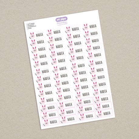 Pack 52 etiquetas termoadhesivas personalizadas para prendas Conejito Rosa