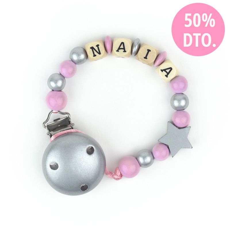 Cadenita de madera personalizada estrella plata rosa (LIQUIDACIÓN 50%)