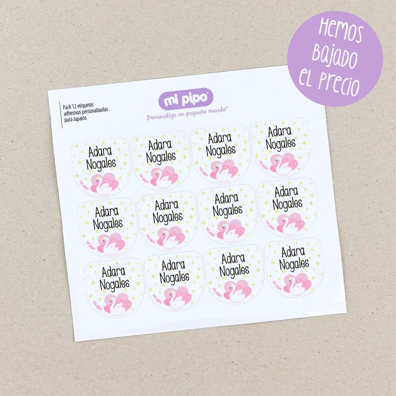 Pack 12 etiquetas personalizadas para zapatos Cisne