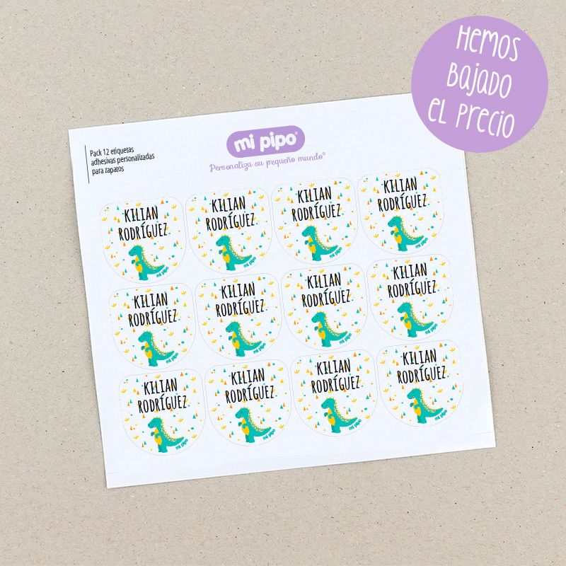 Pack 12 etiquetas personalizadas para zapatos Dinosaurio