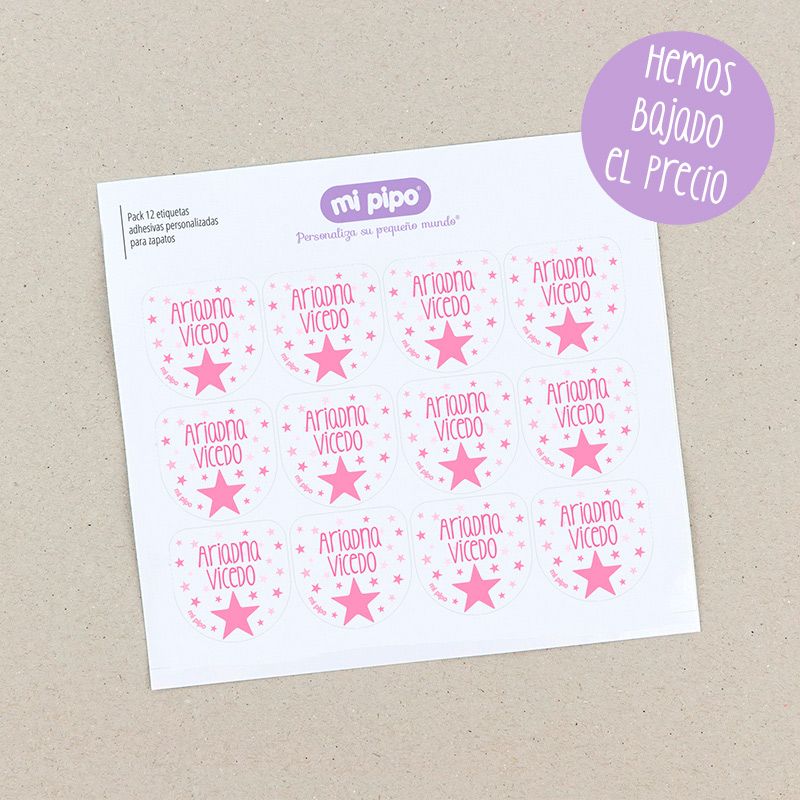 Pack 12 etiquetas personalizadas para zapatos Estrella rosa