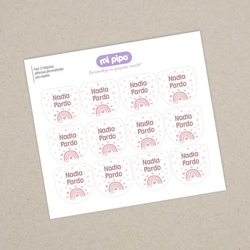 Pack 12 etiquetas personalizadas para zapatos Arcoíris Blush