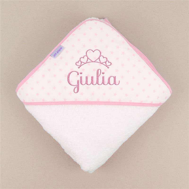 Capa de baño bordada estrellitas rosa, dibujo a elegir