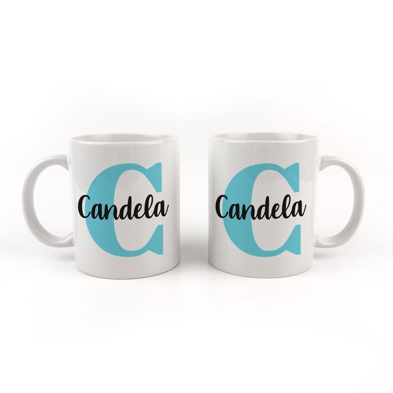 Taza cerámica o plástico Inicial Azul personalizada