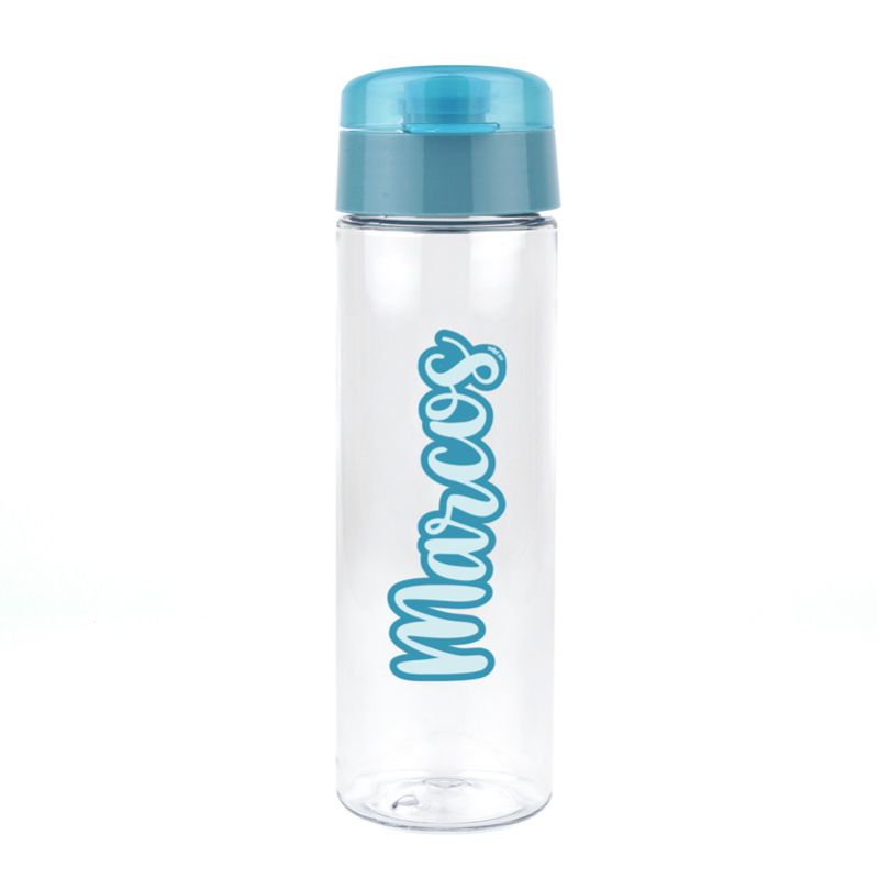 Pack Botella 600ml + Cajita Porta Alimentos Caligrafía Azul personalizadas