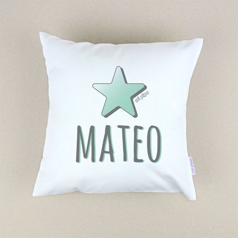 Cojín cuadrado Estrella Menta + Nombre personalizado Ver más grande