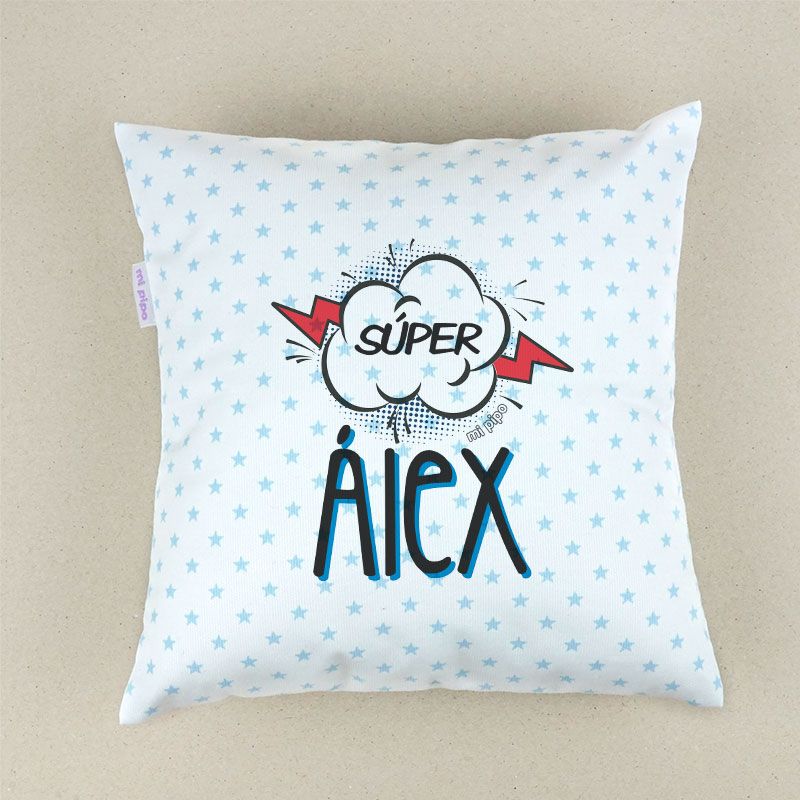 Cojín cuadrado piqué Súper Azul personalizado Ver más grande