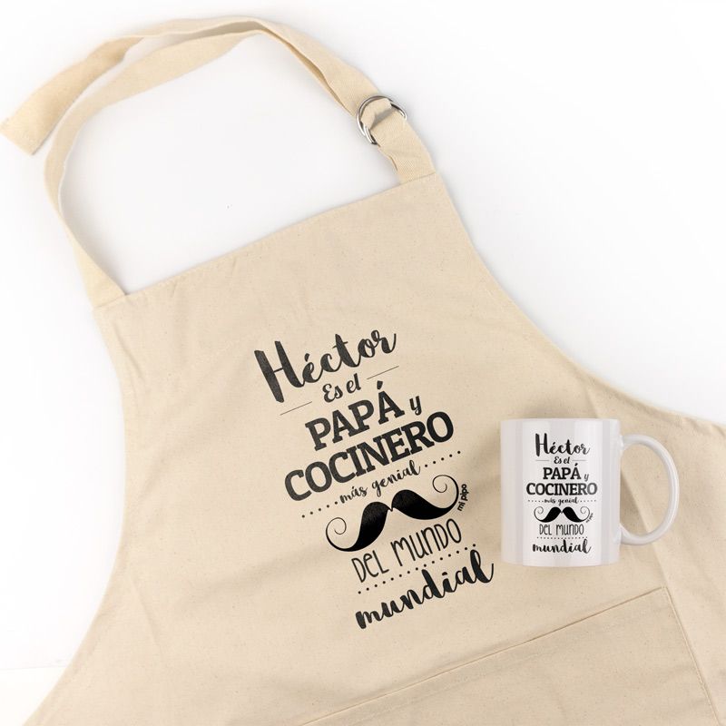 Pack Delantal Papá + Taza (Nombre) Eres el Papá y Cocinero más genial del Mundo mundial