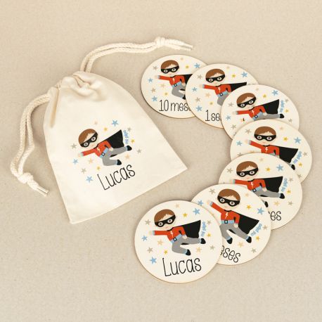 Cumplemeses Bebé Superhéroe personalizado Ver más grande