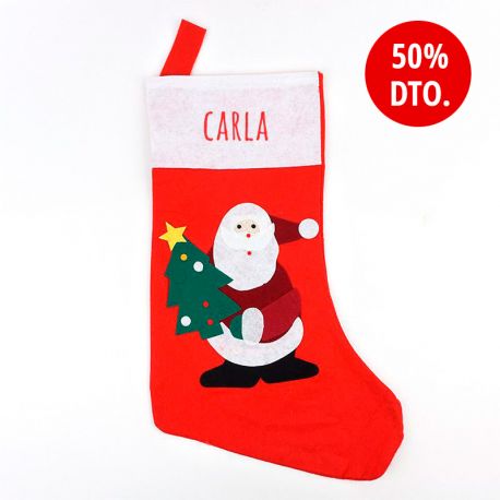 - Calcetín de fieltro en color rojo con aplicación de diseño de muñeco de nieve